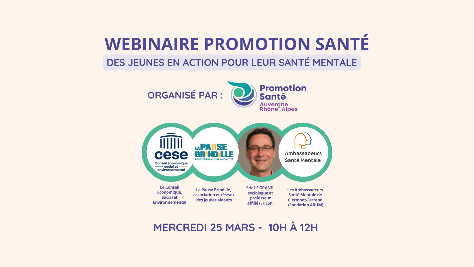 Dans le cadre de la journée de la Santé Mentale Positive, un webinaire vous sera proposé pour mettre en avant : la santé mentale des jeunes… mais surtout l’engagement des jeunes eux-mêmes pour la préserver, la défendre et la faire progresser.